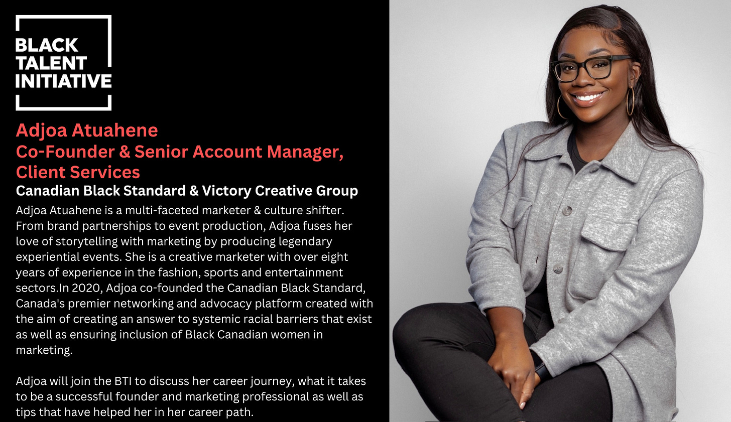 November 24th - Adjoa Athuahene, Co-Founder & Senior Account Manager, Client Services, at Canadian Black Standard & Victory Creative Group
