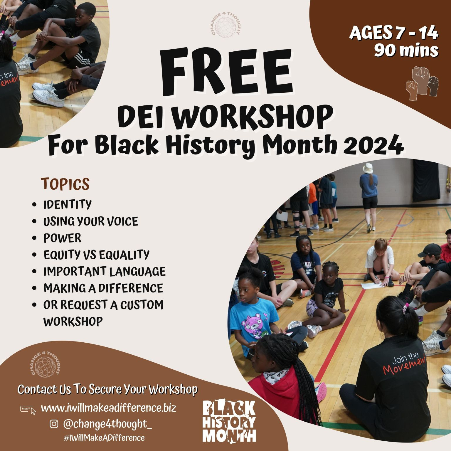 Taijah Cox-Armstrong, the Executive Director at I Will Make a Difference, has revealed an exceptional and valuable opportunity for elementary schools. This initiative offers a FREE Diversity, Equity, and Inclusion (DEI) Workshop/Assembly to foster a more inclusive and culturally aware educational environment for students aged 7-14. This special event is scheduled for Black History Month in 2024.