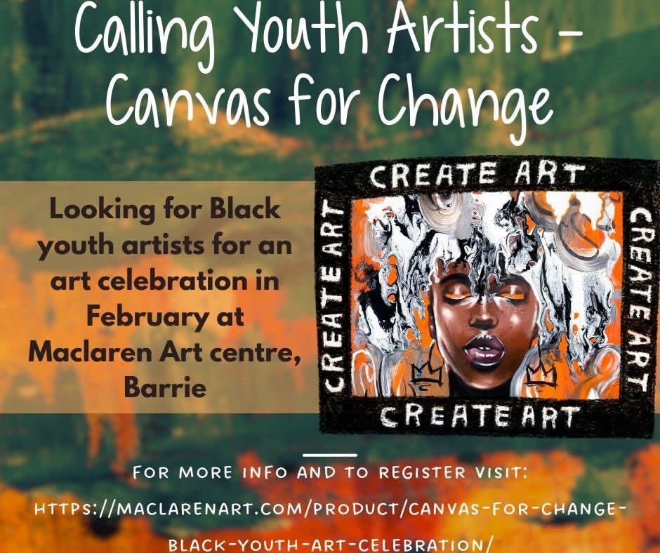 Making Change is thrilled to announce its partnership with MacLaren Art Centre, Shak’s World Community Centre, and Bradford West Gwillimbury Public Library, which is offering a special art program tailored for creative youth across Simcoe County! In honour of Black History Month, the program invites Black youth aged 13 to 18 years old to participate in a series of workshops designed to create a distinctive work of art led by Toronto-based artist mentor Ashante Blackwood.